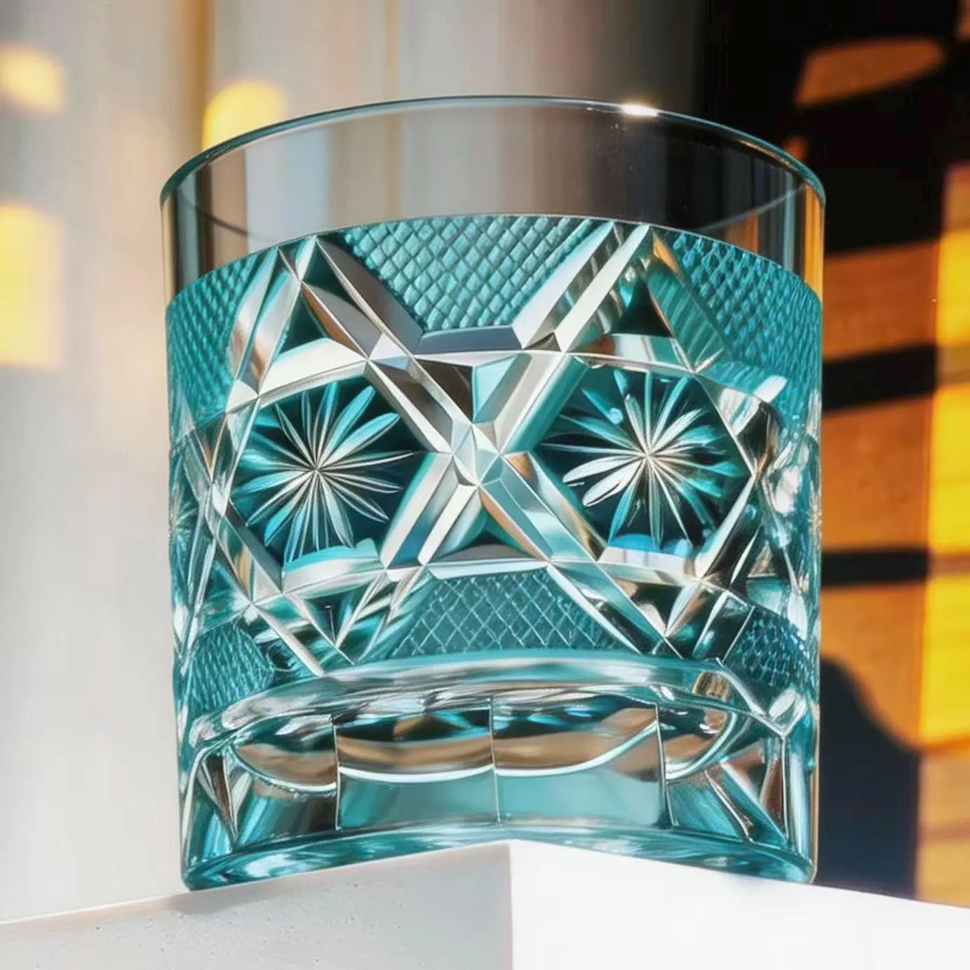 Teal Star Diamond Edo Kiriko Whiskey Glass | Luxury Handmade Gift🎁