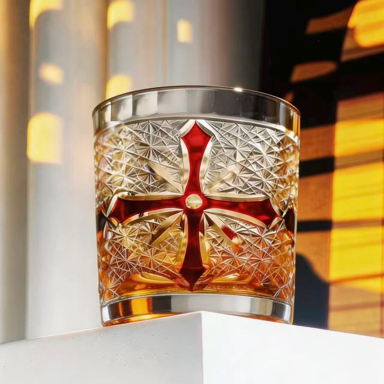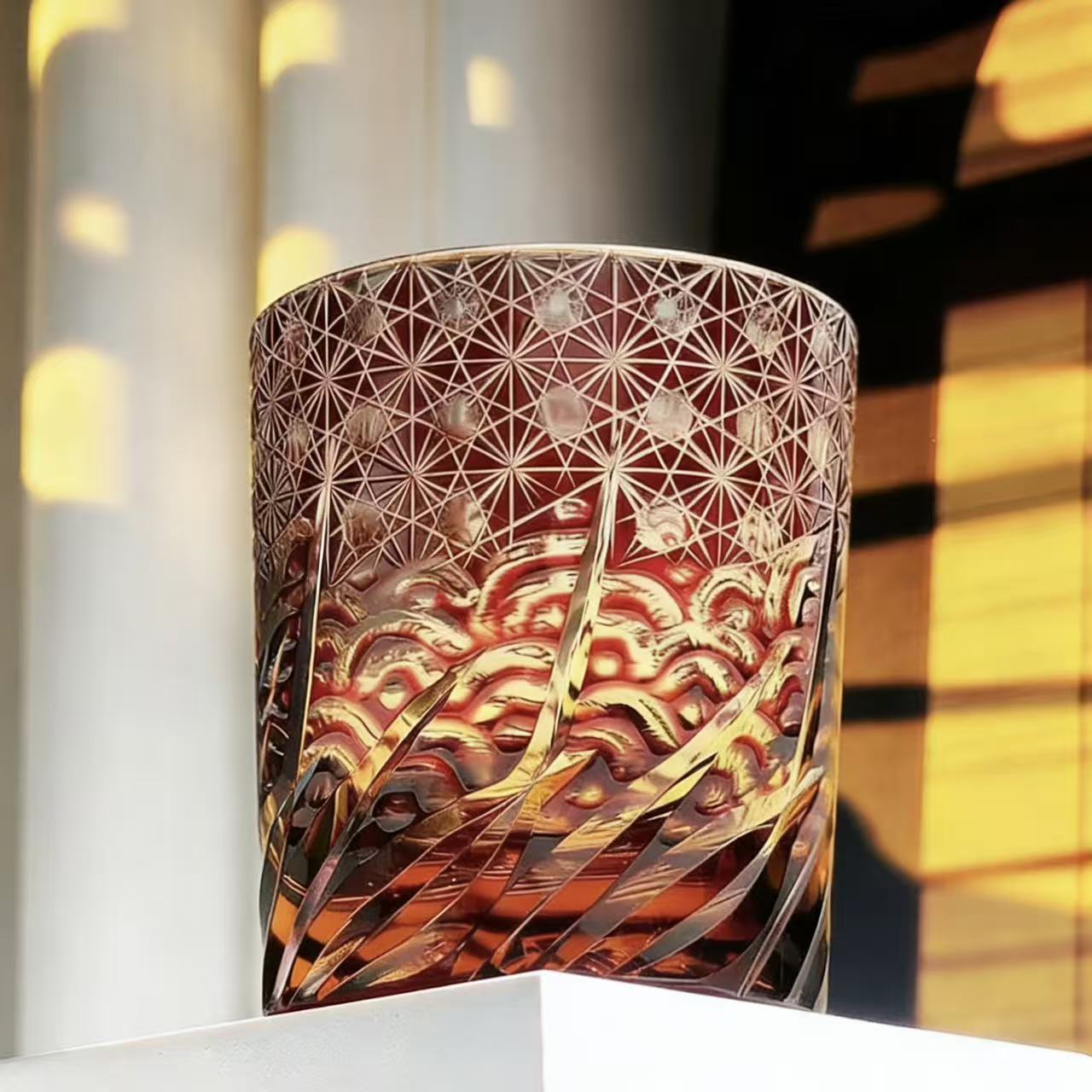 Amber Red Cross Star Edo Kiriko Whiskey Glass | Luxury Handmade Gift🎁