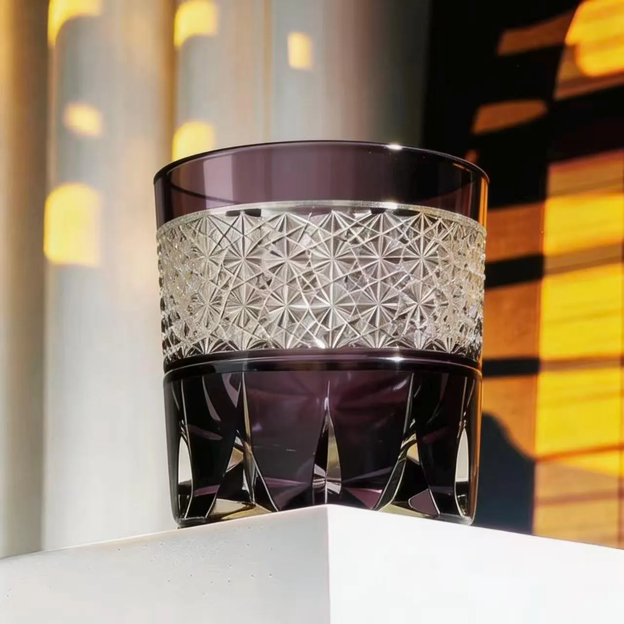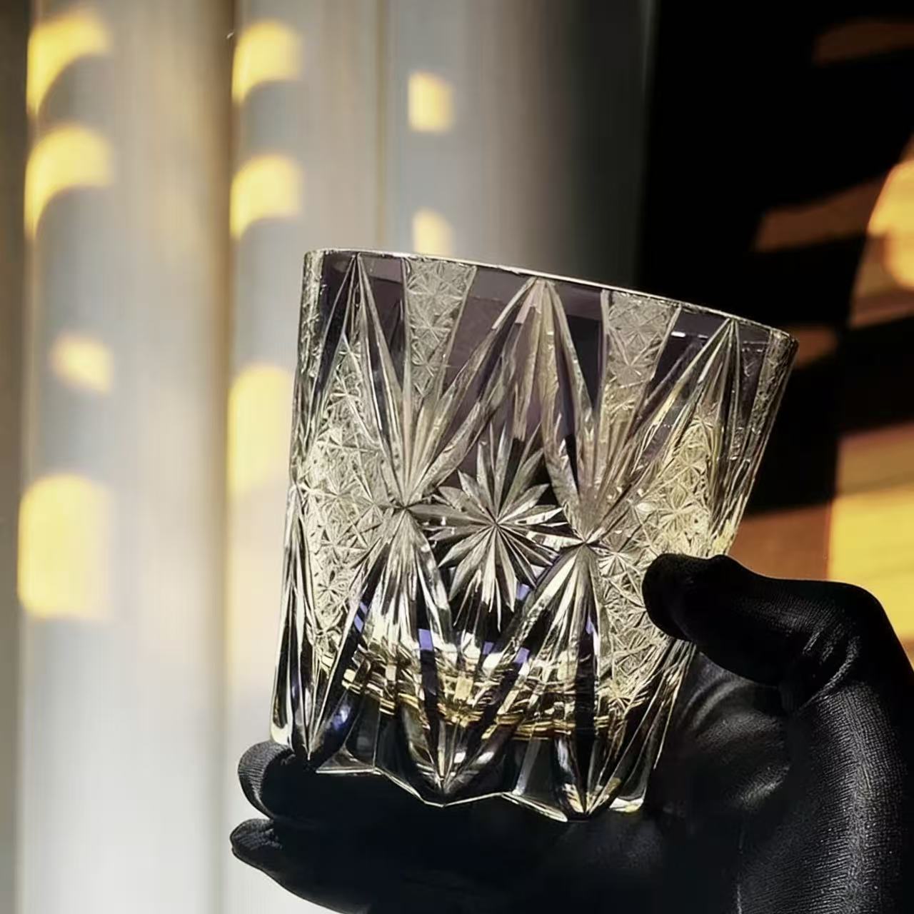 Royal Purple Star Edo Kiriko Whiskey Glass | Handmade Luxury Gift🎁