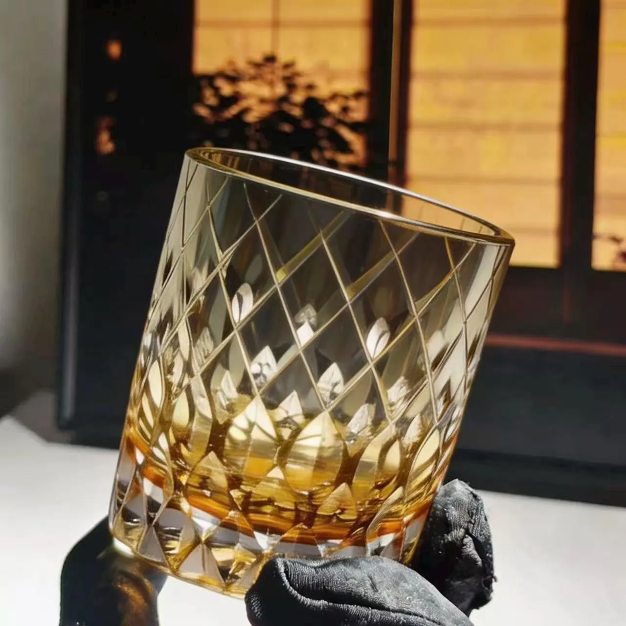 Amber Star Grid Edo Kiriko Whiskey Glass | Handmade Luxury Gift🎁