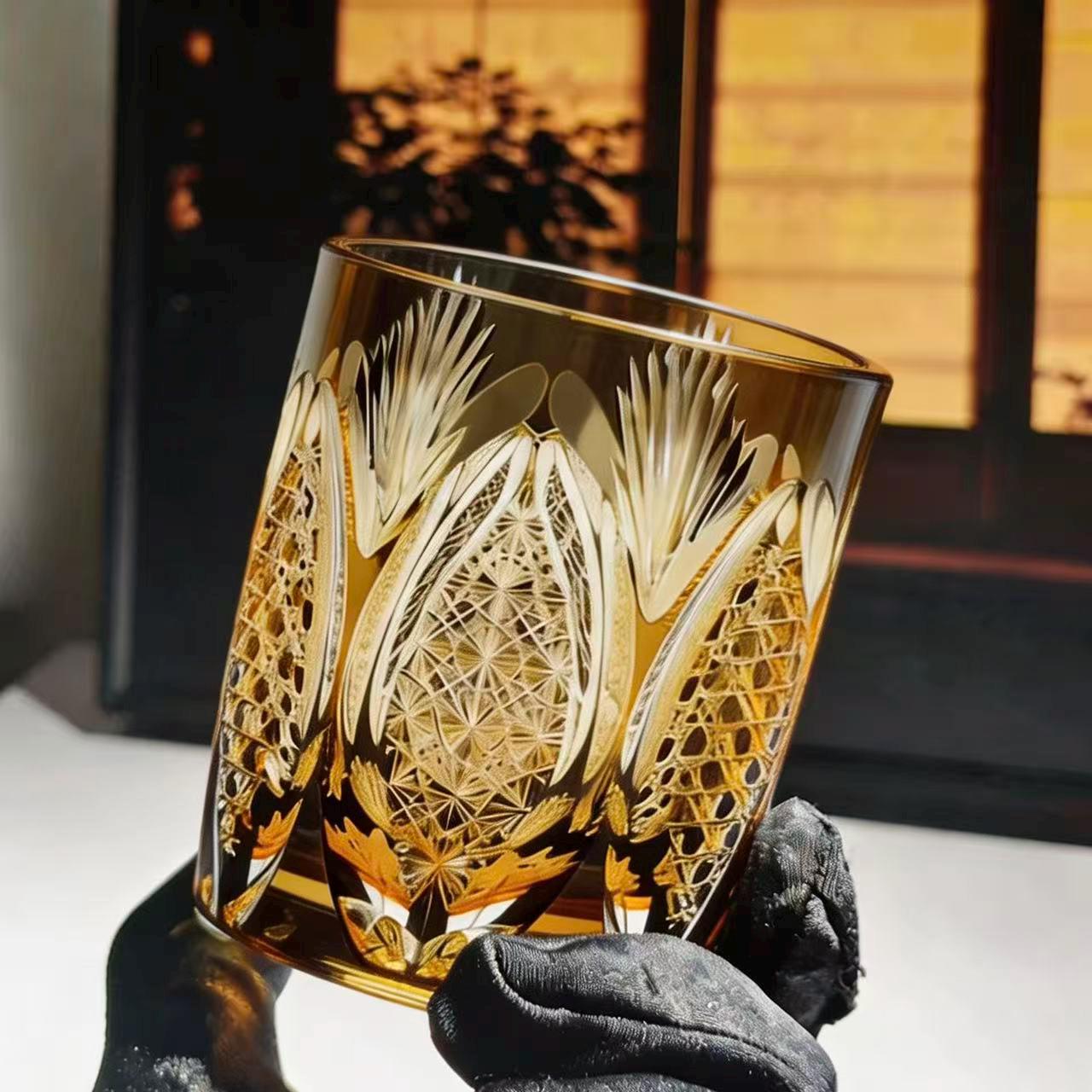 Amber Wheat Star Edo Kiriko Whiskey Glass | Handmade Luxury Gift🎁