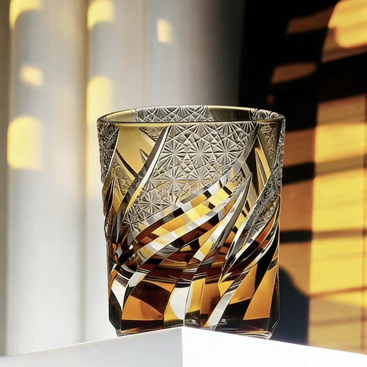 Amber Swirl Blade Edo Kiriko Whiskey Glass | Luxury Handmade Gift🎁