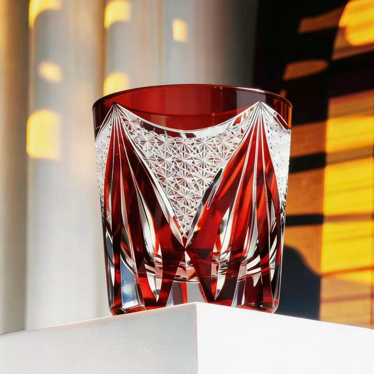 Deep Red Star Web Edo Kiriko Whiskey Glass | Handmade Luxury Gift🎁