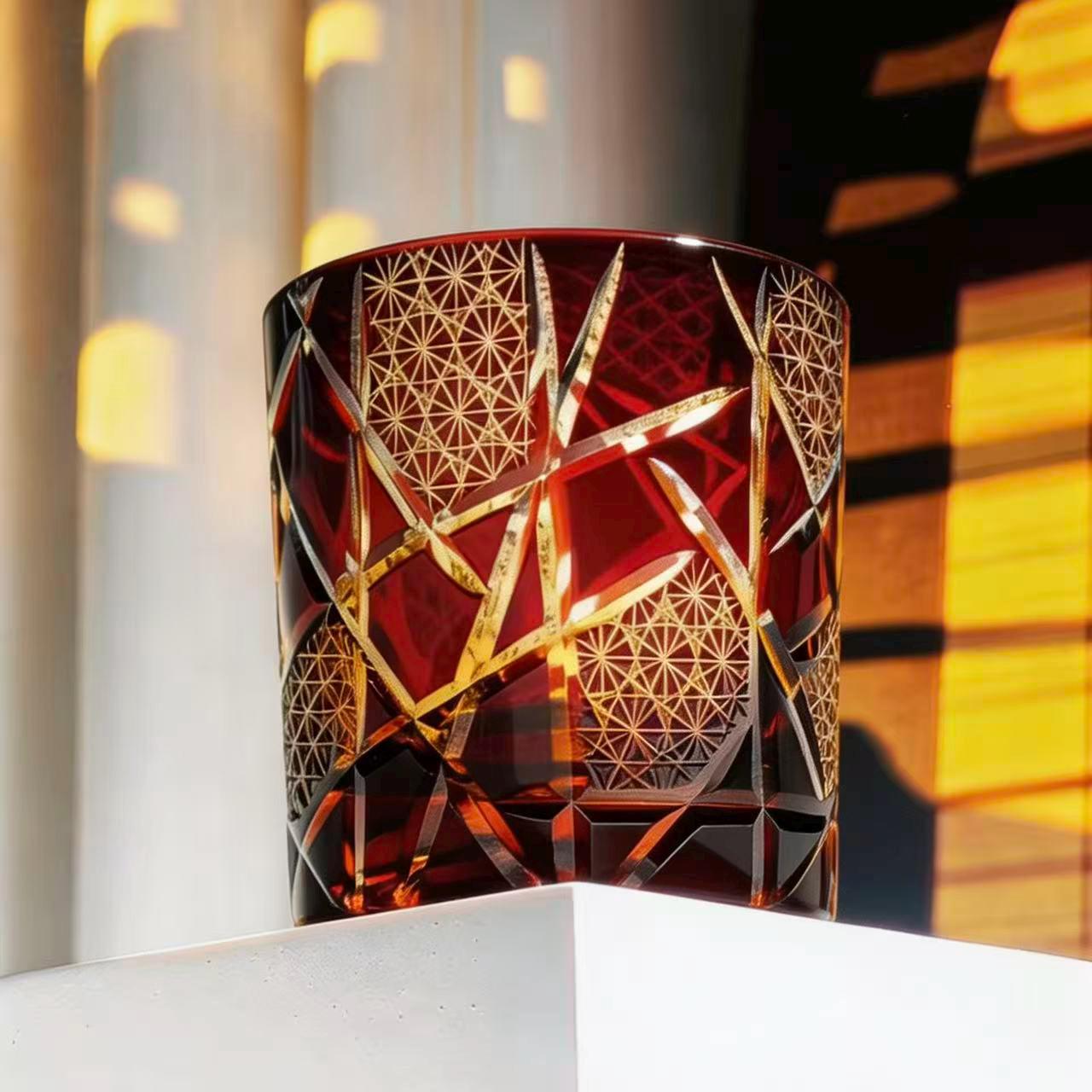 Crimson Gold Branch Star Edo Kiriko Whiskey Glass | Luxury Handmade Gift🎁