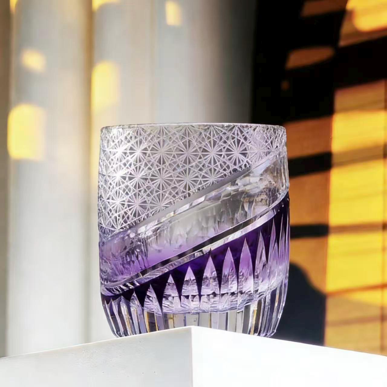 Purple Gradient Edo Kiriko Whiskey Glass | Handcrafted Crystal Gift🎁