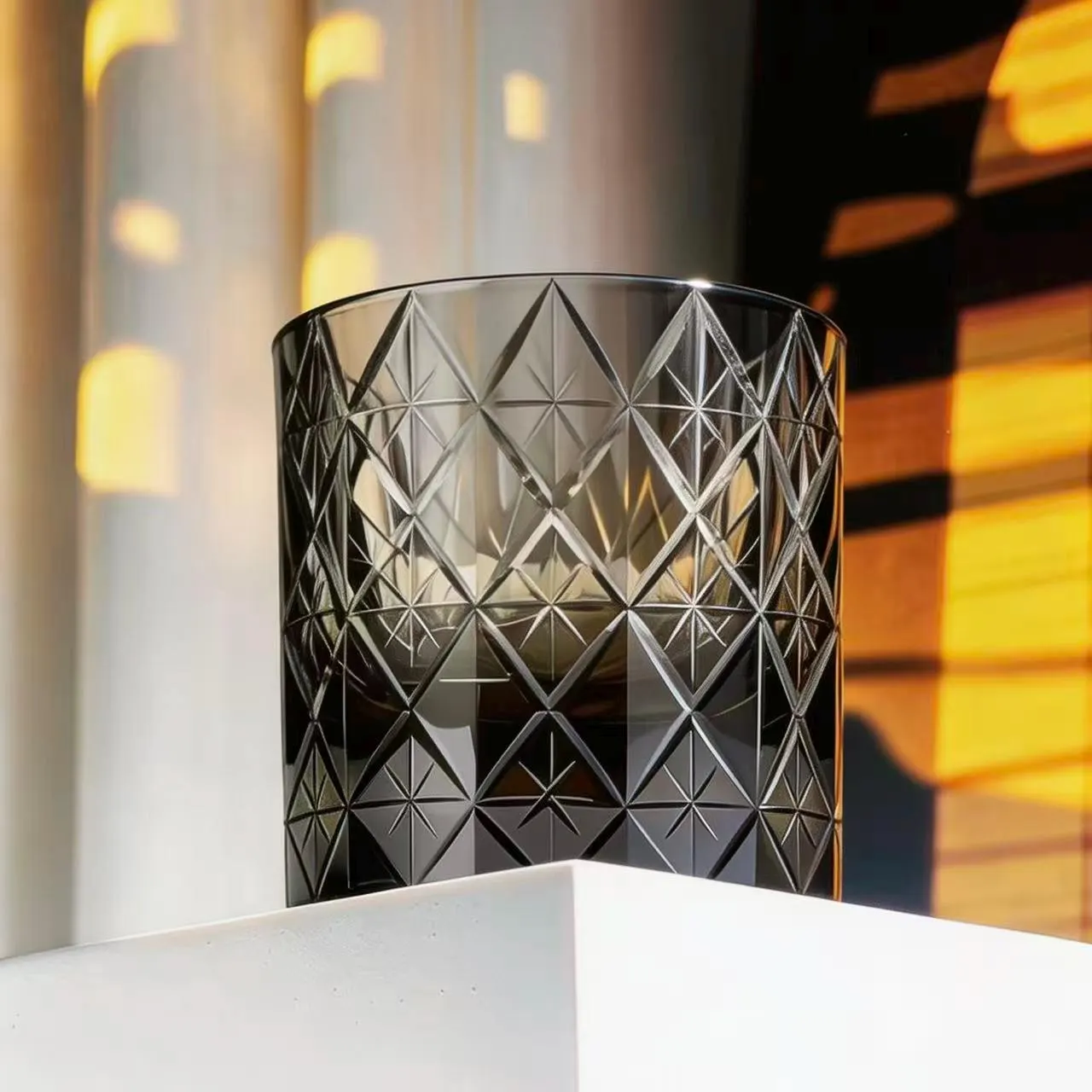 Smoky Grey Grid Edo Kiriko Whiskey Glass | Handcrafted Gift🎁