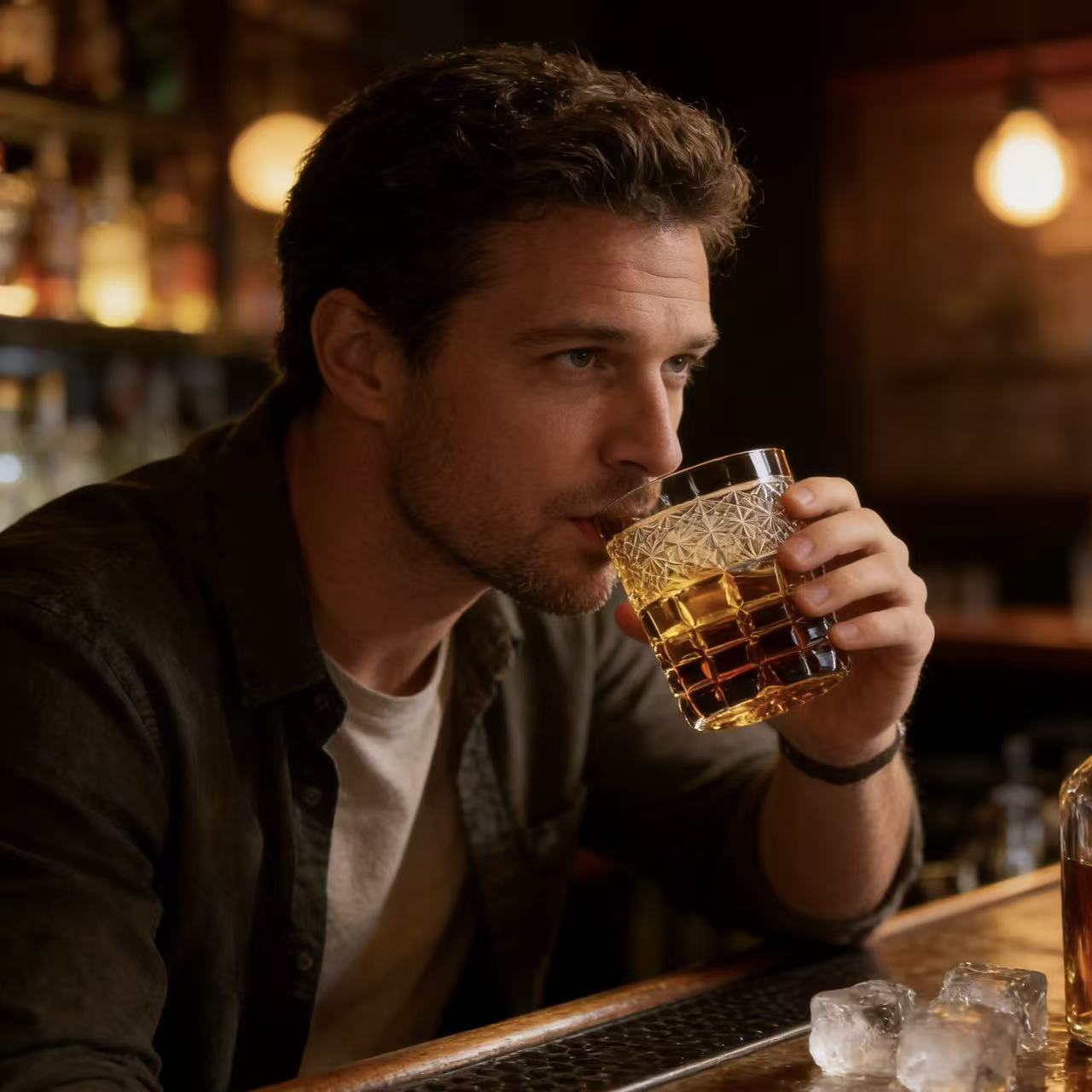 Inspired by warm amber glow and geometric precision, this Edo Kiriko glass blends traditional hand-cut craft with modern Western style. Delicate star-grid patterns and bold geometric cuts refract light into a luminous honey-toned glow, perfectly matching refined Western home bar aesthetics.
