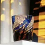 Blue Gold Swirl Star-Cut Edo Kiriko Whiskey Glass | Handcrafted Collectible Tumbler