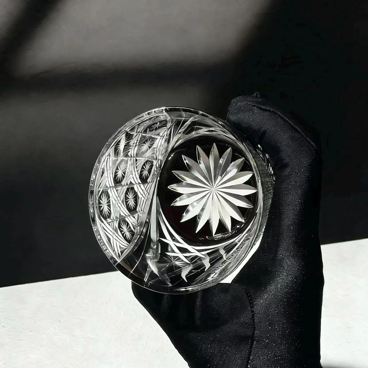 Inspired by the brilliance of starlight and traditional Edo Kiriko craftsmanship, this glass merges bold diamond motifs with delicate star-web patterns. Rooted in centuries-old Japanese glass-cutting art, the precise hand-carved details refract light into a brilliant, crystalline glow against the clear crystal base, perfectly blending Eastern heritage with modern luxury home bar aesthetics.