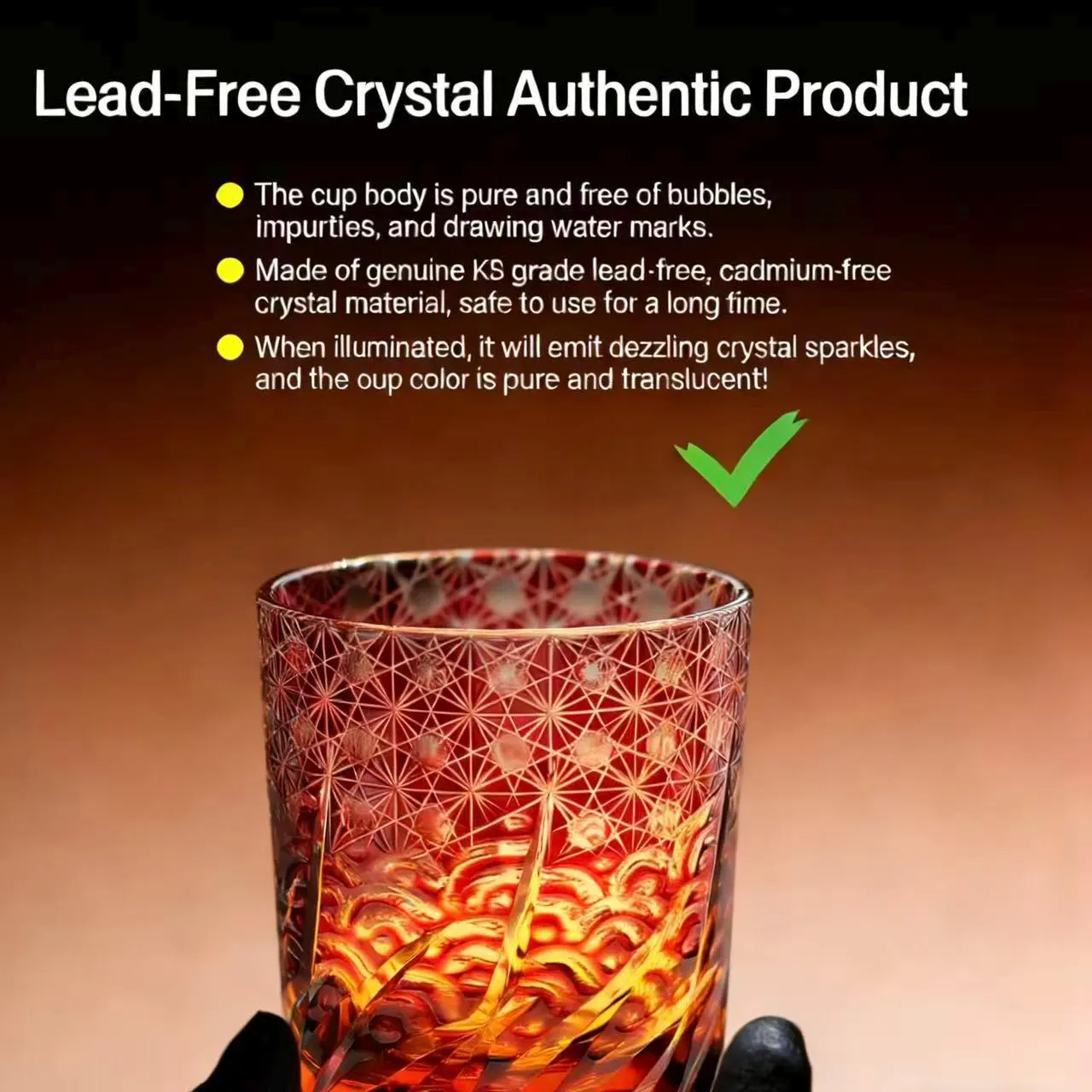 Deep Red Star Web Edo Kiriko Whiskey Glass | Handmade Luxury Gift🎁