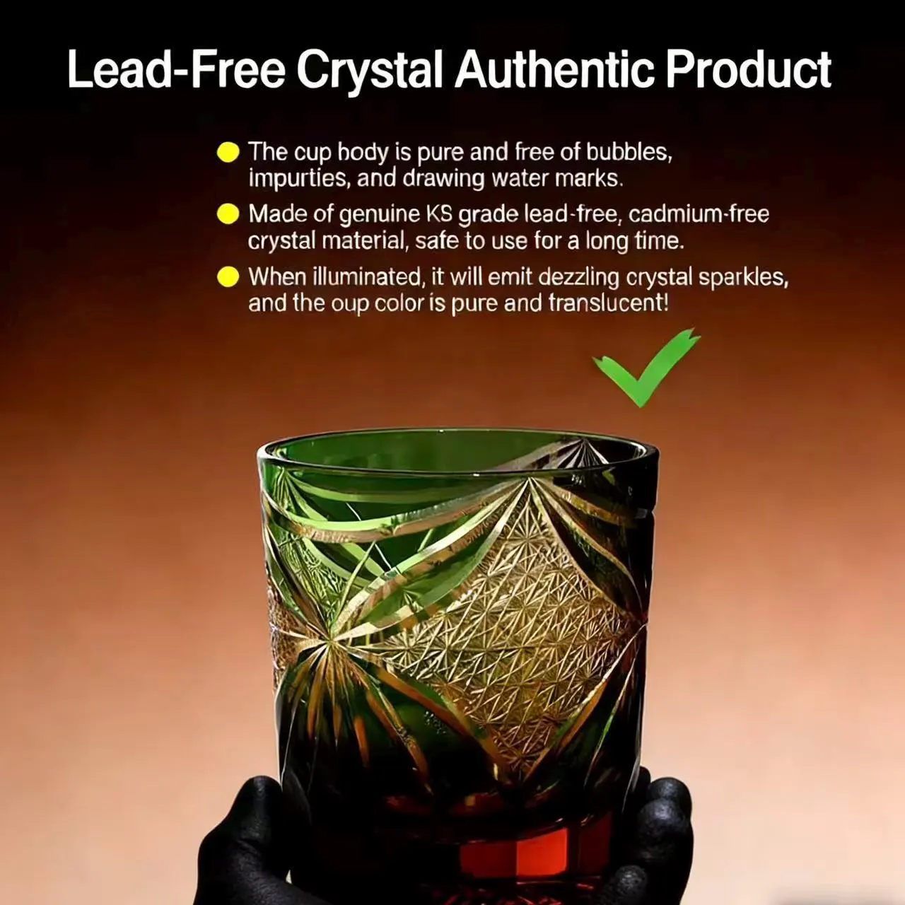 • Design: Features a unique star-cut pattern and a striking amber gradient, created by skilled artisans.