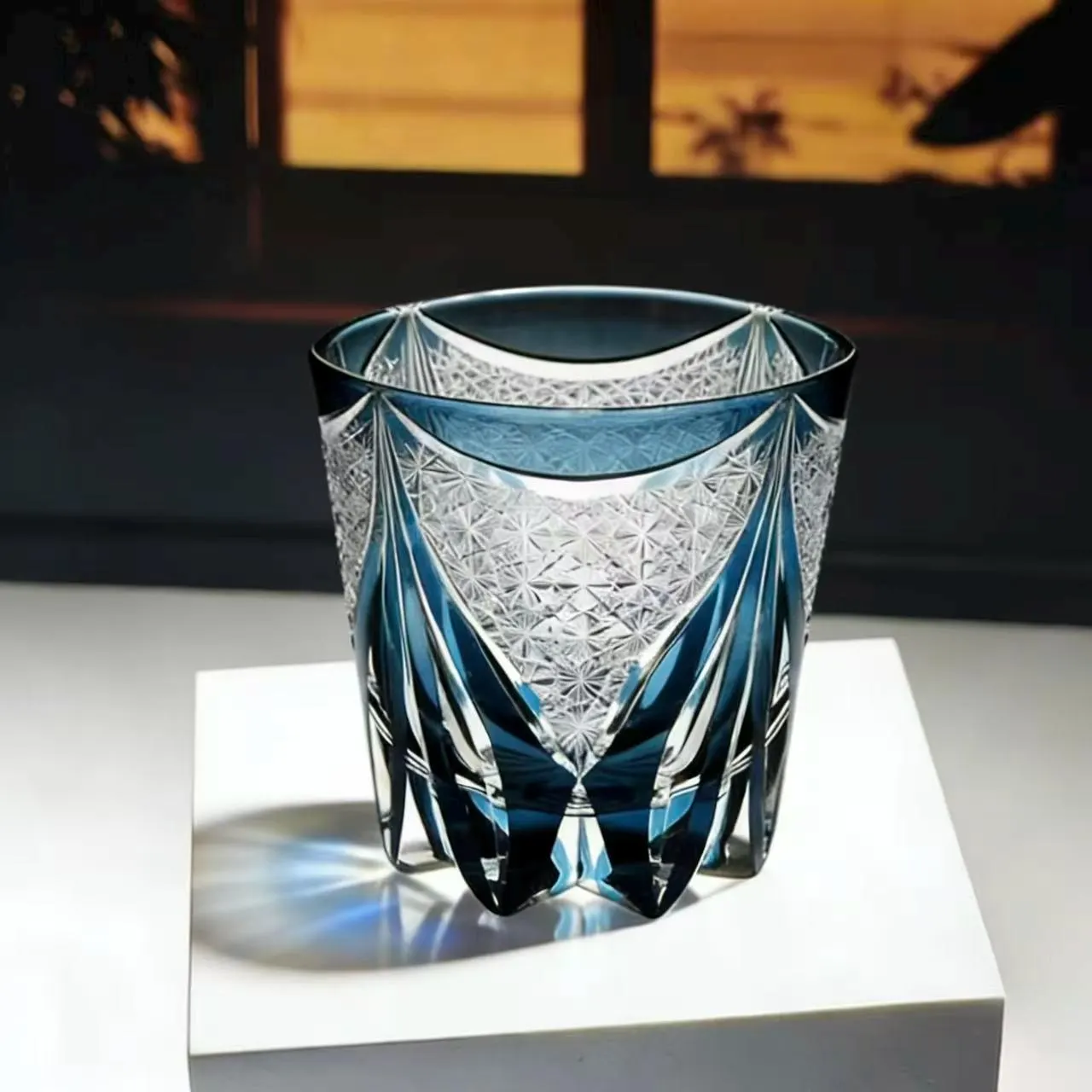 Every glass is meticulously hand-carved by skilled artisans using centuries-old Edo Kiriko techniques, where each facet and micro-cut is shaped and polished by hand to reveal the deep blue layers beneath. No two pieces are identical, imbuing each with unique character and soul that stands apart from mass-produced drinkware, preserving the authentic spirit of traditional Japanese glass art.