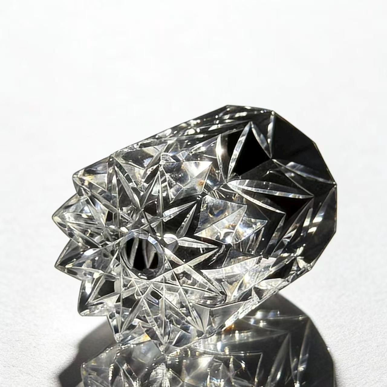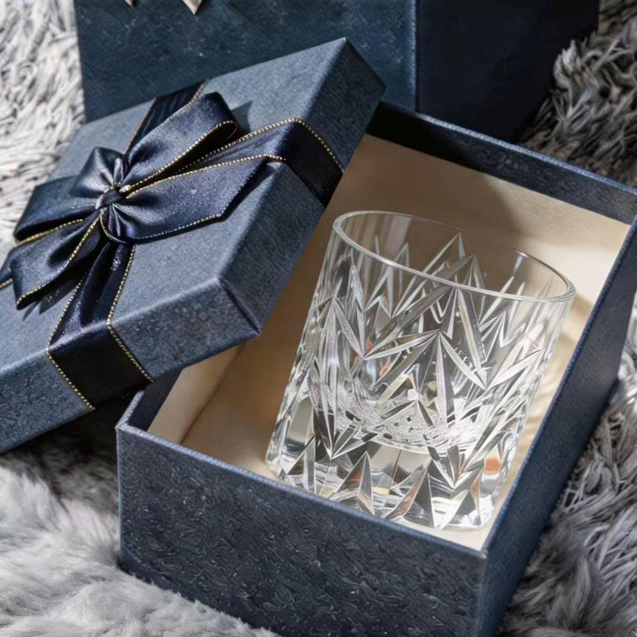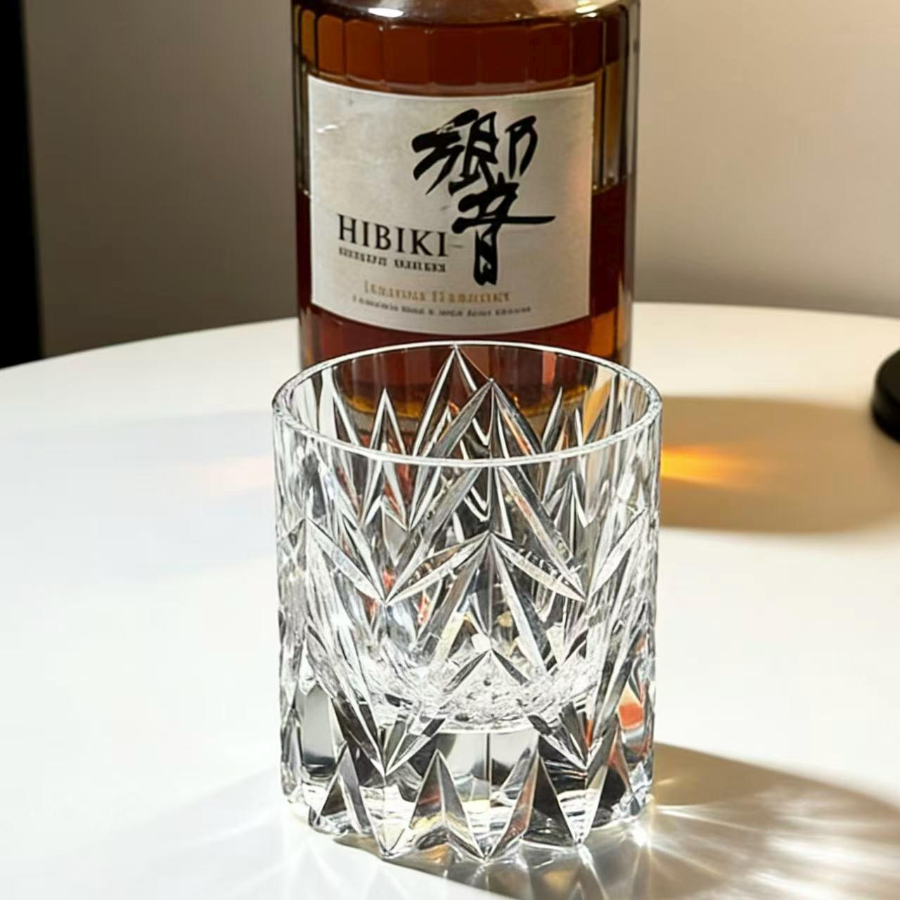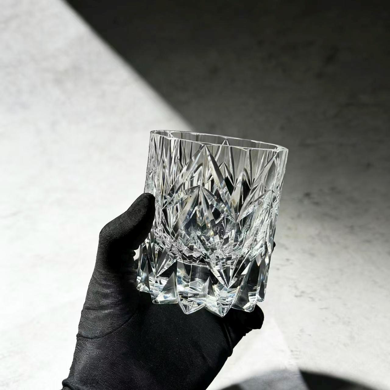 Inspired by the sharp geometry of crystalline formations and architectural spires, our clear Edo Kiriko whiskey glass is designed to turn every sip into a moment of luminous modern elegance. Each piece is meticulously hand-carved with interlocking diamond spike patterns, where angular cuts intersect to catch and refract light, creating a dazzling, prismatic effect that showcases the crystal’s pure transparency.