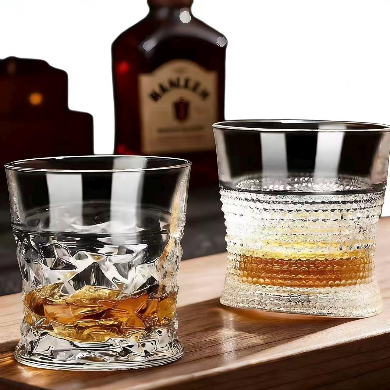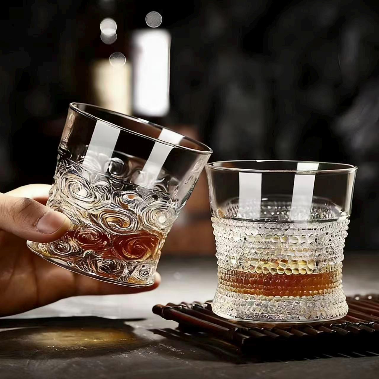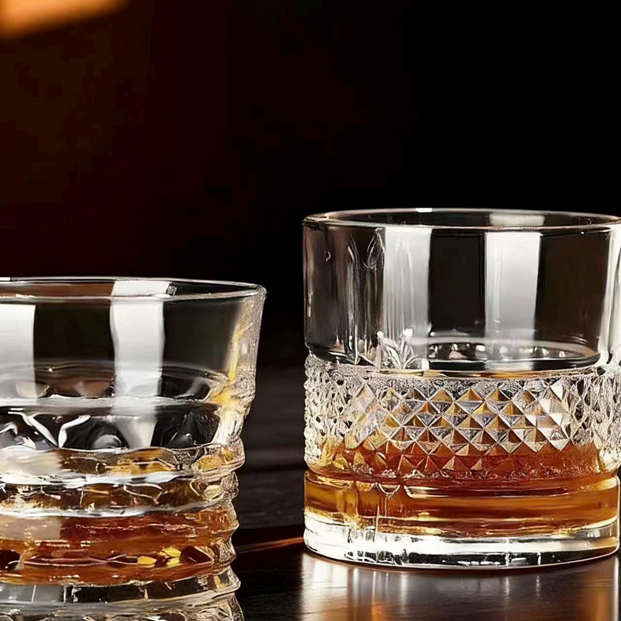 Inspired by the fluid motion of ocean waves and the artistry of Edo Kiriko craftsmanship, this glass features hand-carved swirling wave patterns that mimic the flow of water. The organic, curvilinear cuts refract light into a soft, rippling glow against the clear crystal base, perfectly matching Western modern luxury home bar aesthetics.