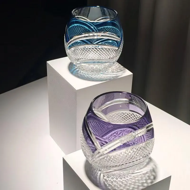 Every glass is meticulously hand-carved by skilled artisans using centuries-old Edo Kiriko techniques, where each spiral facet and diamond grid texture is shaped and polished by hand to reveal the deep violet layers beneath. No two pieces are identical, imbuing each with unique character and soul that stands apart from mass-produced drinkware, preserving the authentic spirit of traditional Japanese glass art.